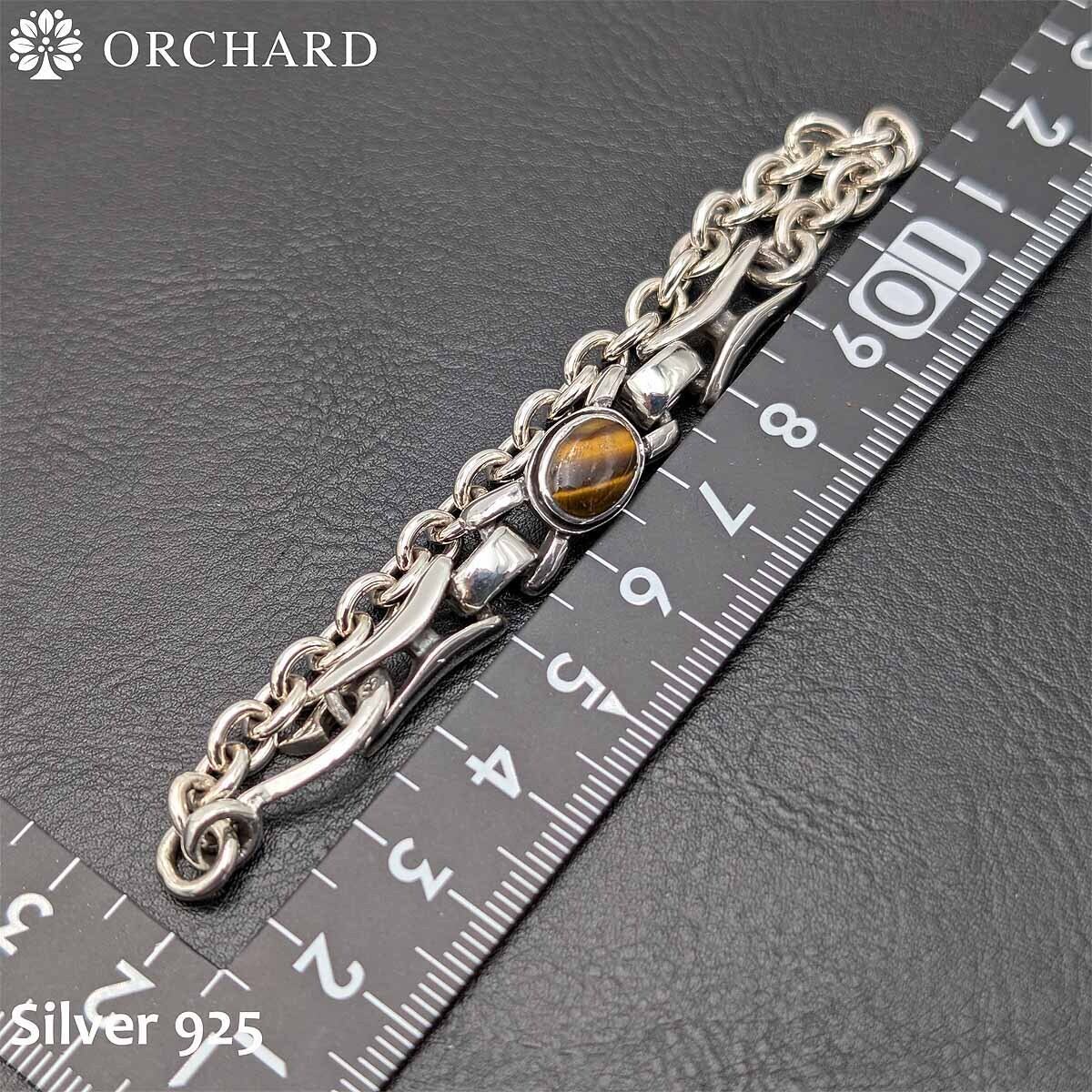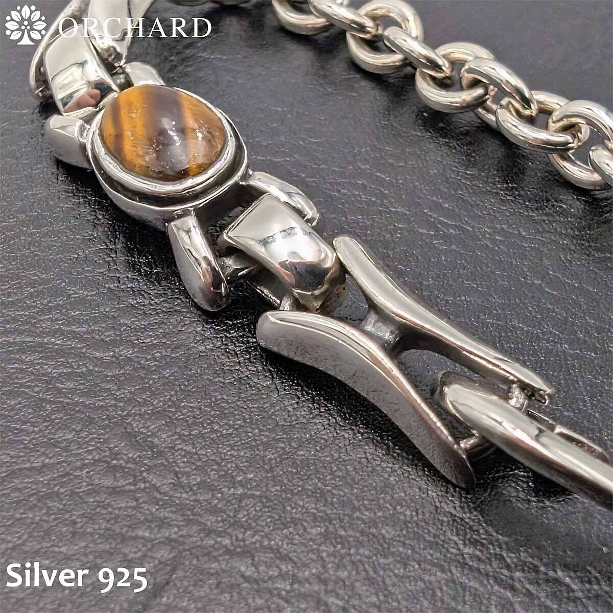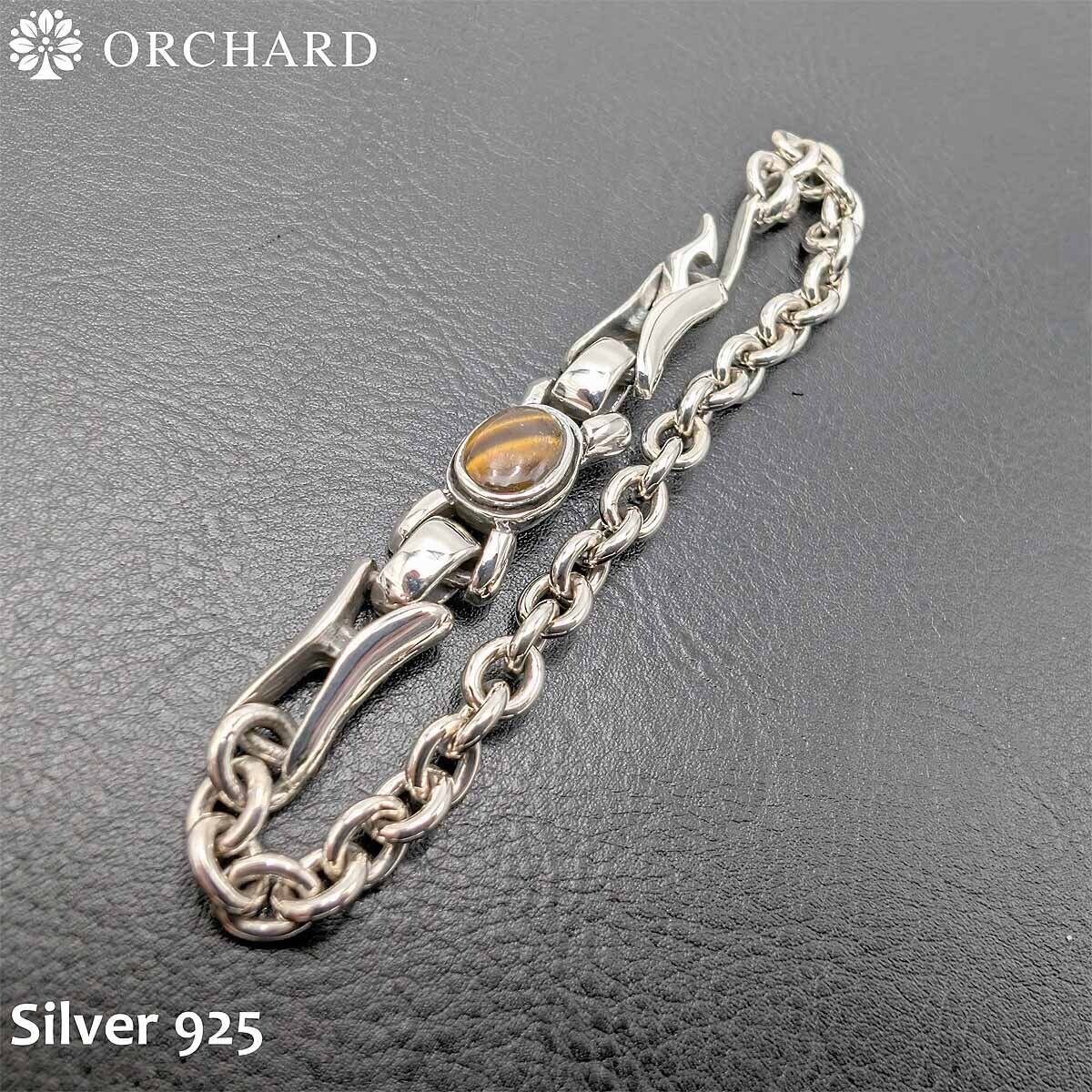 シルバー925 アンカーチェーン タイガーアイブレスレット 22cm メンズ レディース ユニークデザイン 高級ジュエリー
