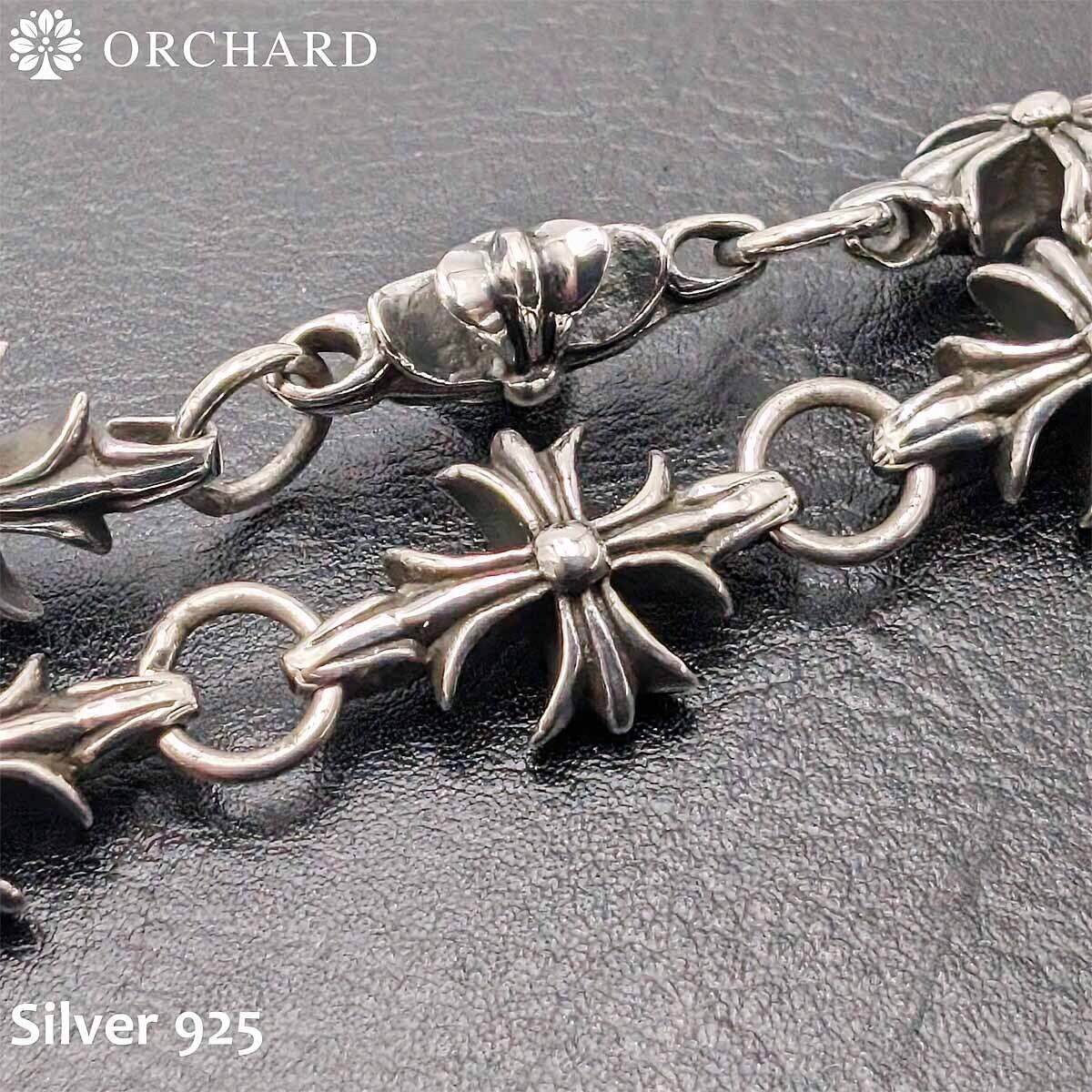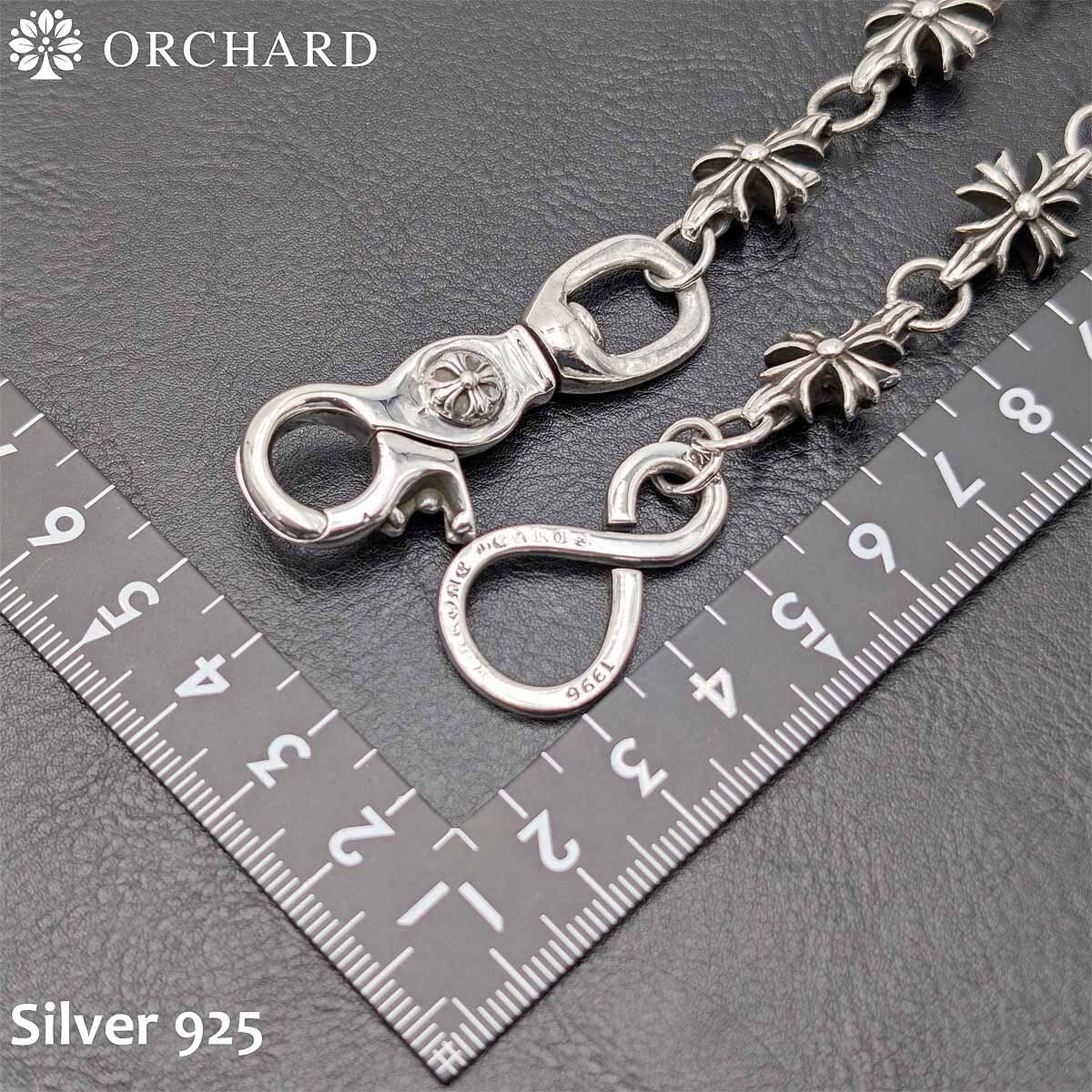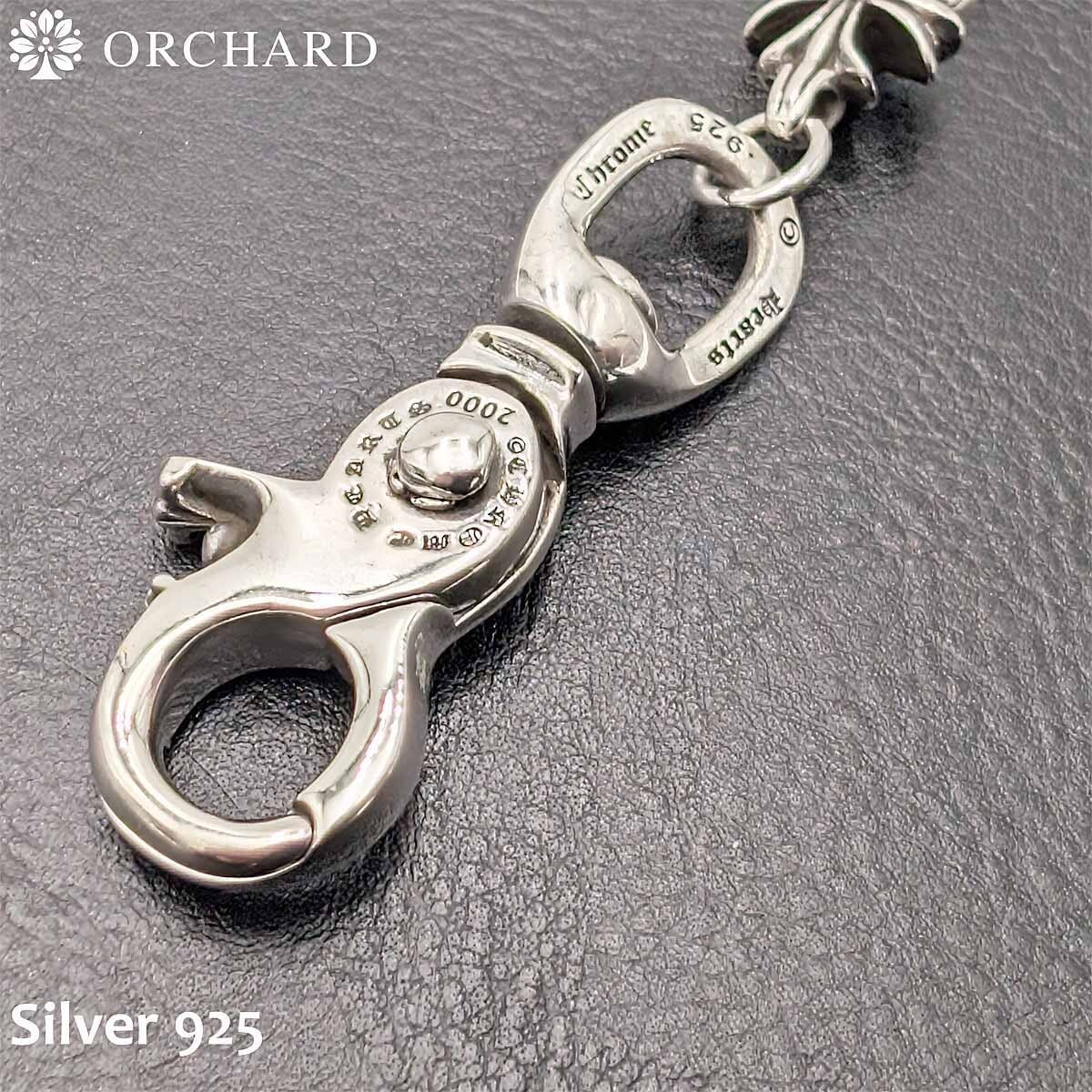 シルバー925製、チェーンおよび金具部分にクロスモチーフが施された重厚感のあるウォレットチェーンです。