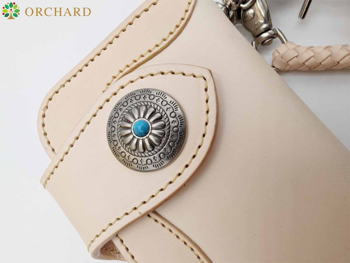 財布、ウォレットチェーンクリップにはターコイズストーンをあしらったコンチョを使用しています。