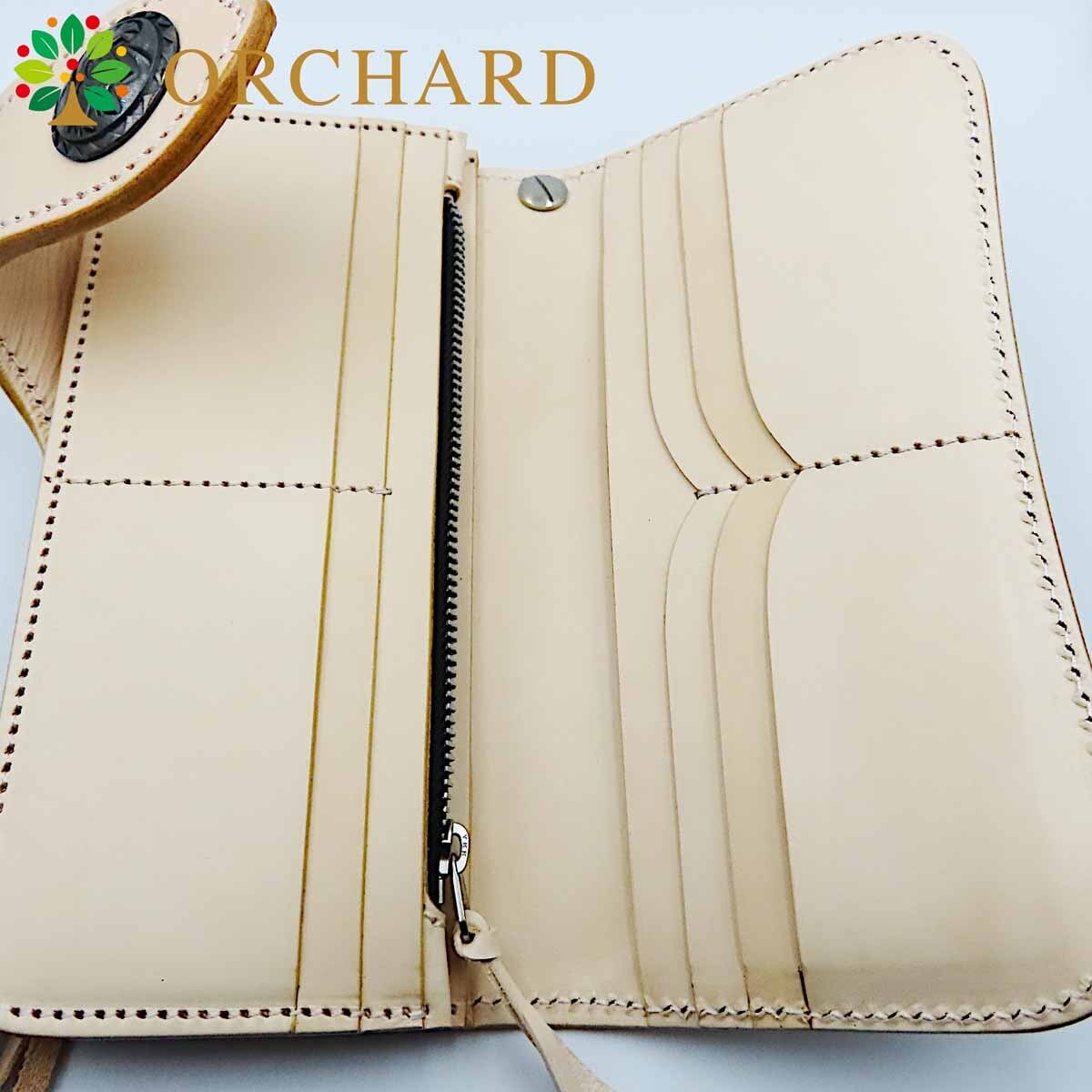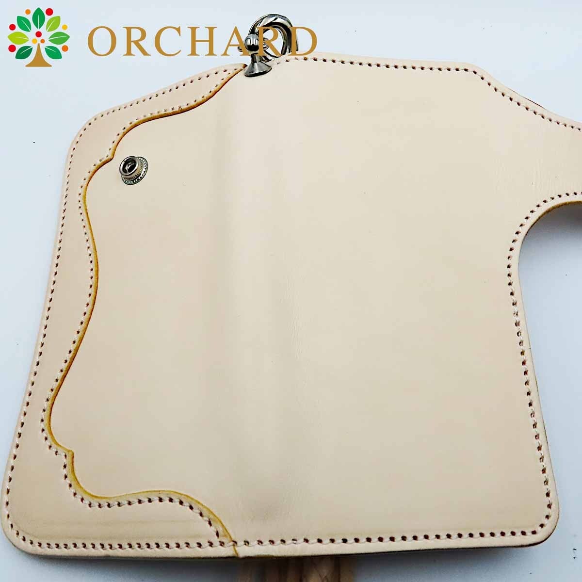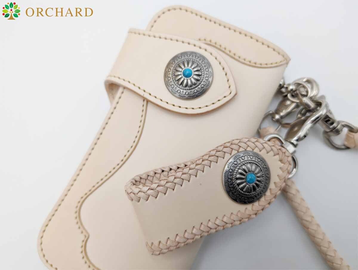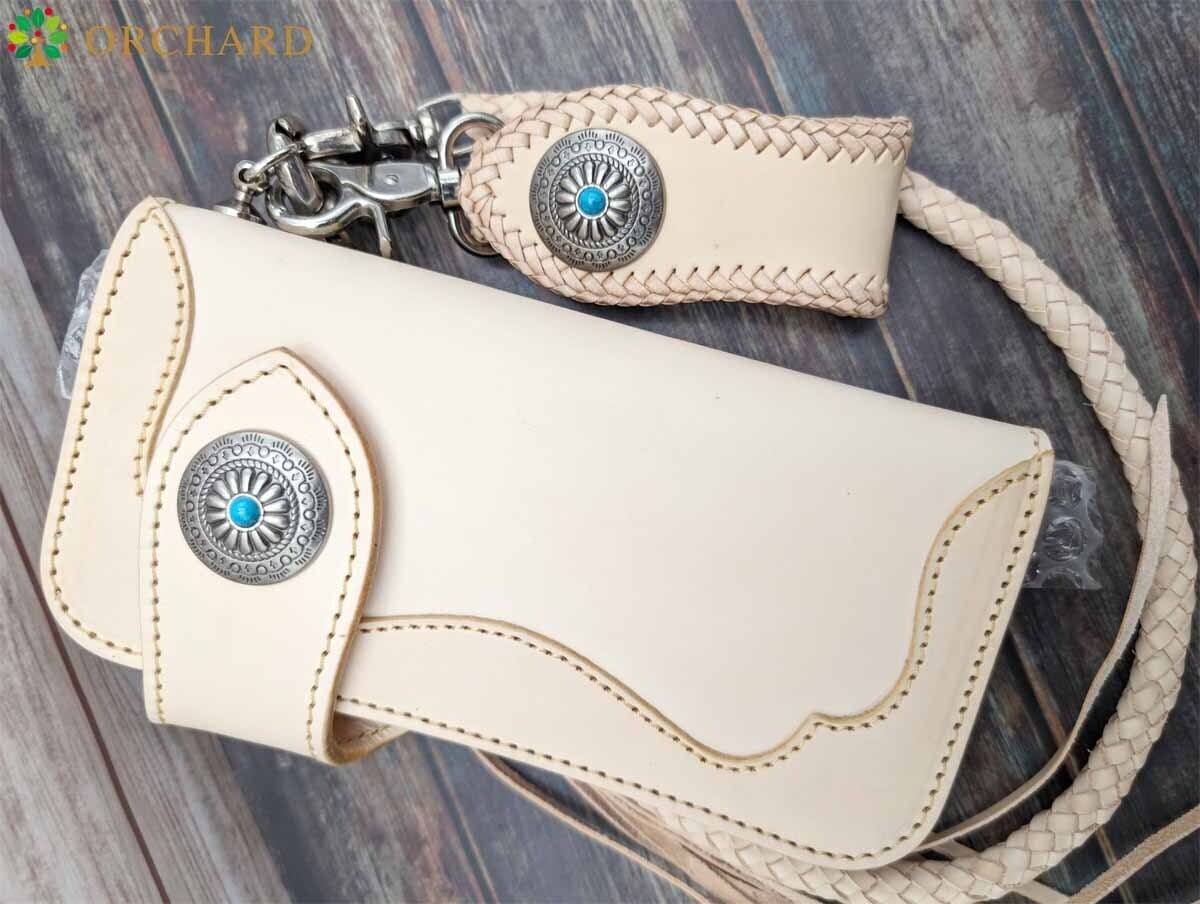 牛革 カウレザー バイカーズウォレット バイカー バイカーウォレット フラワーカービング ウォレットチェーン ナチュラル コンチョ シンプル