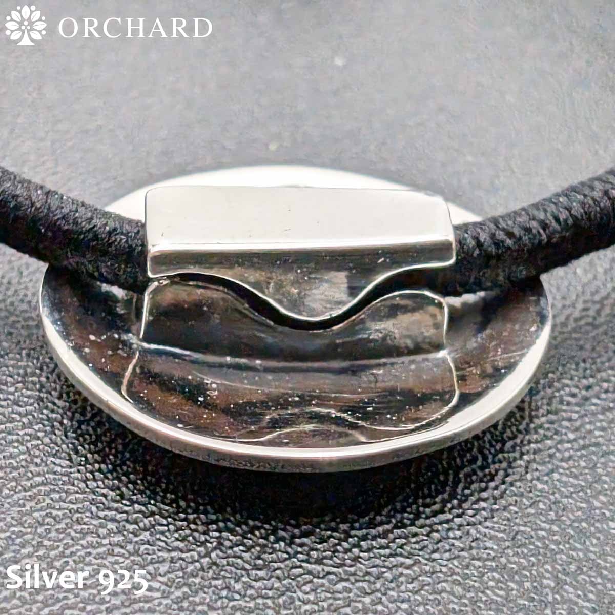シルバー925製のサンライトイーグルデザインのコンチョが付いたヘアゴムブレスレットです。コンチョ部分には太陽とイーグルのモチーフが刻まれており、シンプルながらも力強いデザインが特徴です。ヘアゴムとしてもブレスレットとしてもご使用いただけるユニークなアイテムで、シルバーの輝きが手元や髪をスタイリッシュに演出します。カジュアルなシーンから少し特別な場面まで、幅広く活用できるアクセサリーです。
